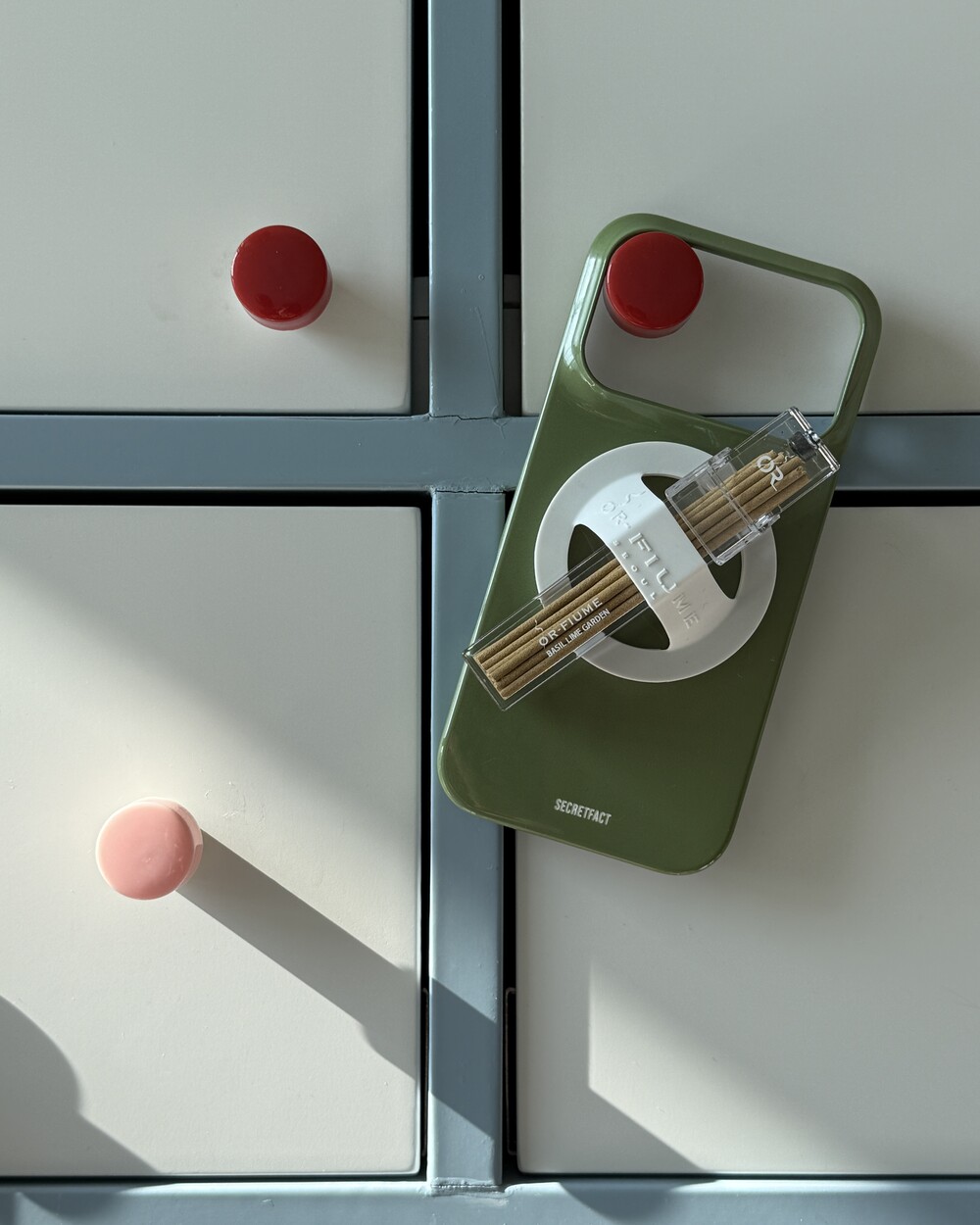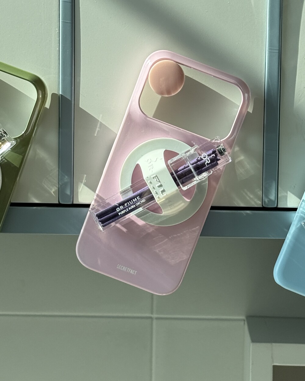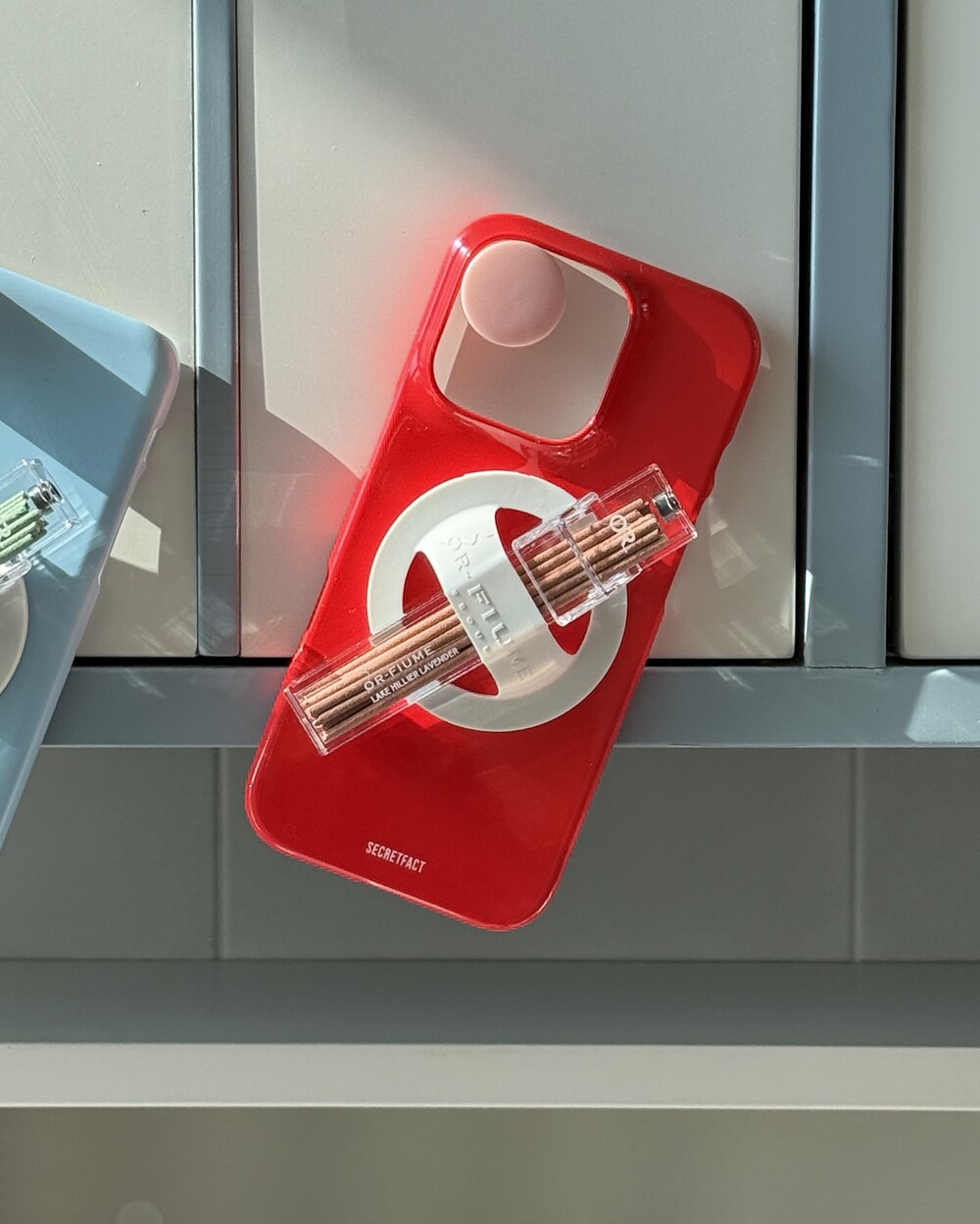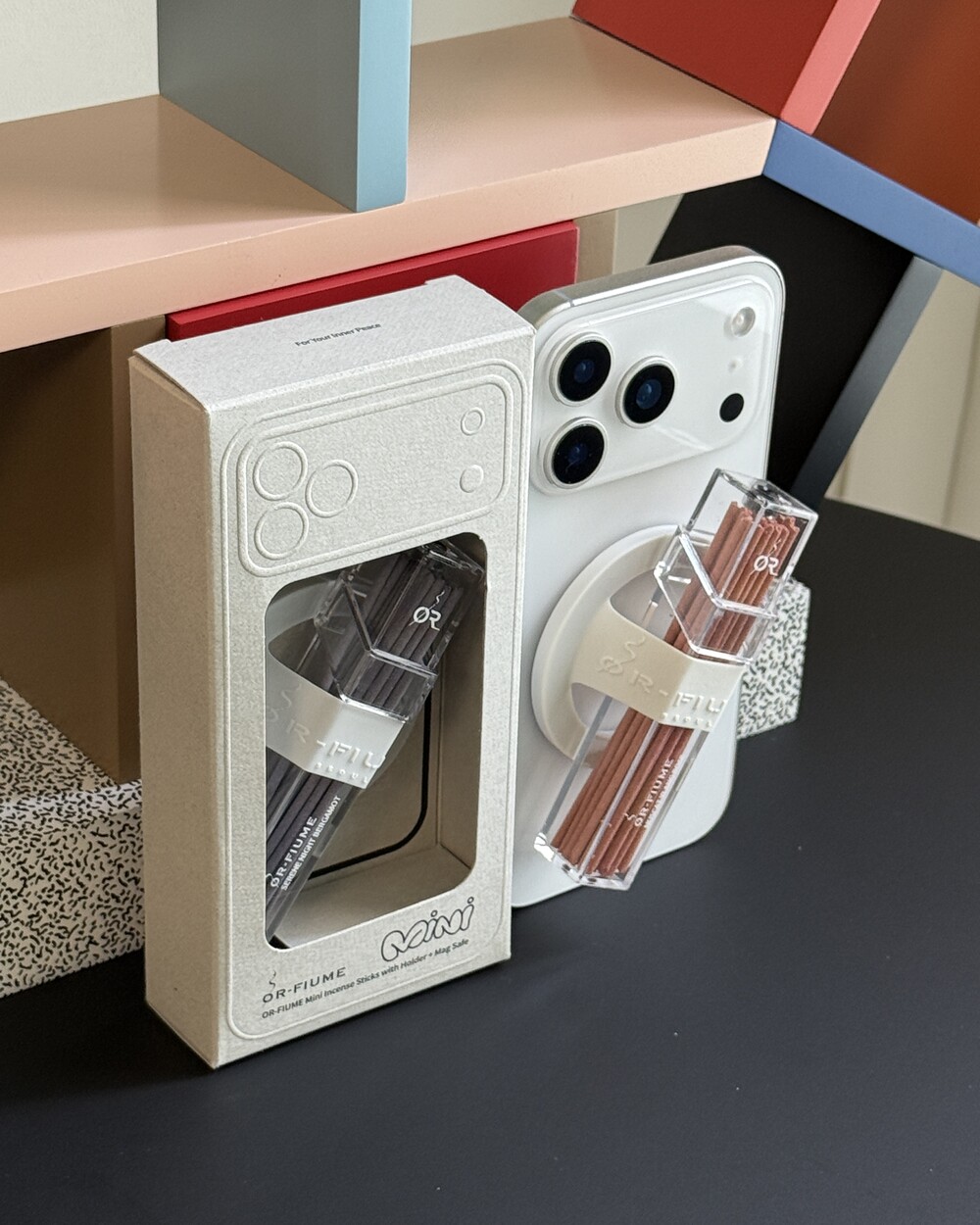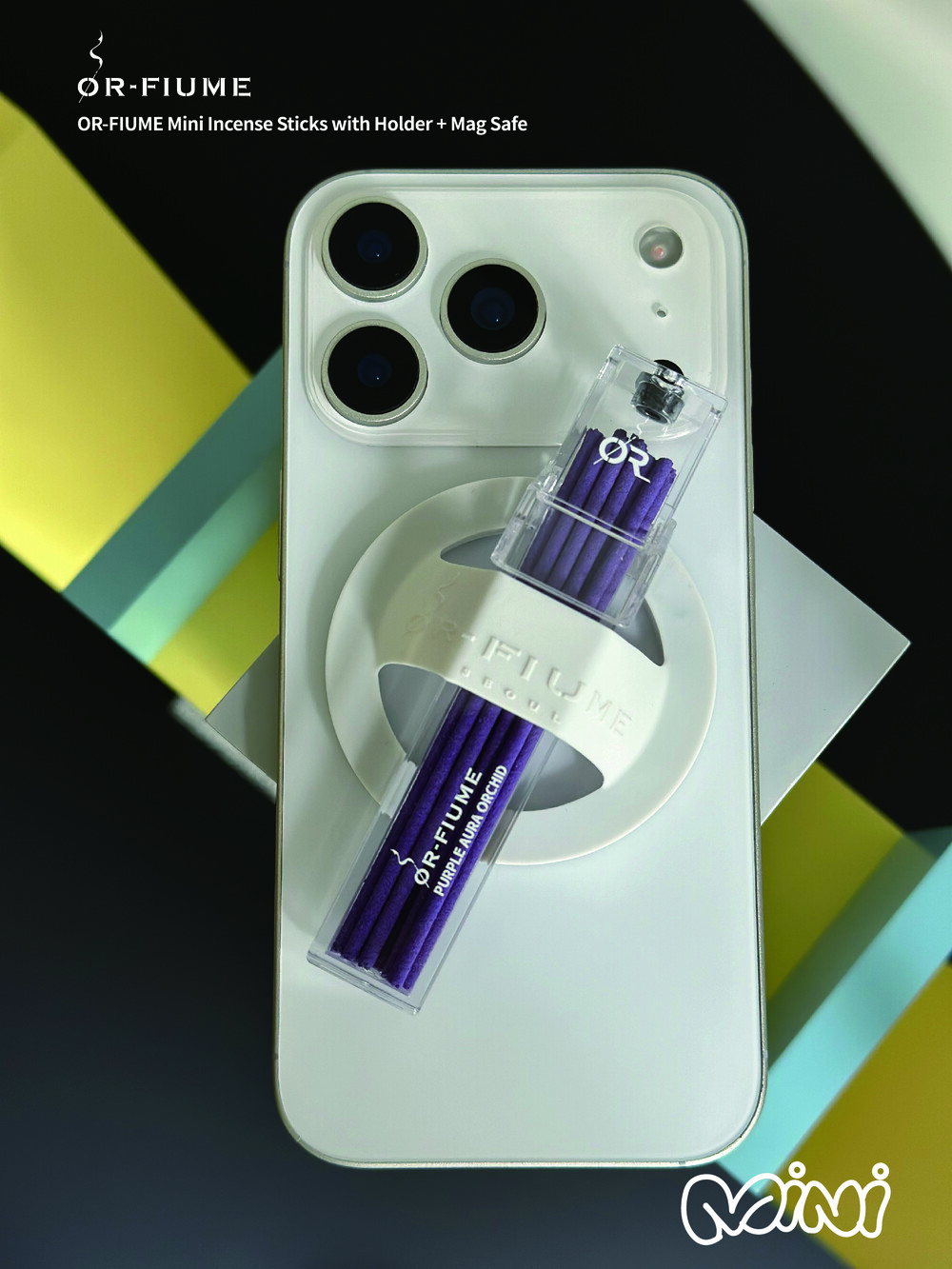 아이폰 뒷면에 MagSafe 방식으로 부착되는 인센스 스틱 '올피움 미니'는 기존 올피움의 하프 사이즈로, 휴대와 보관이 한층 편리합니다.