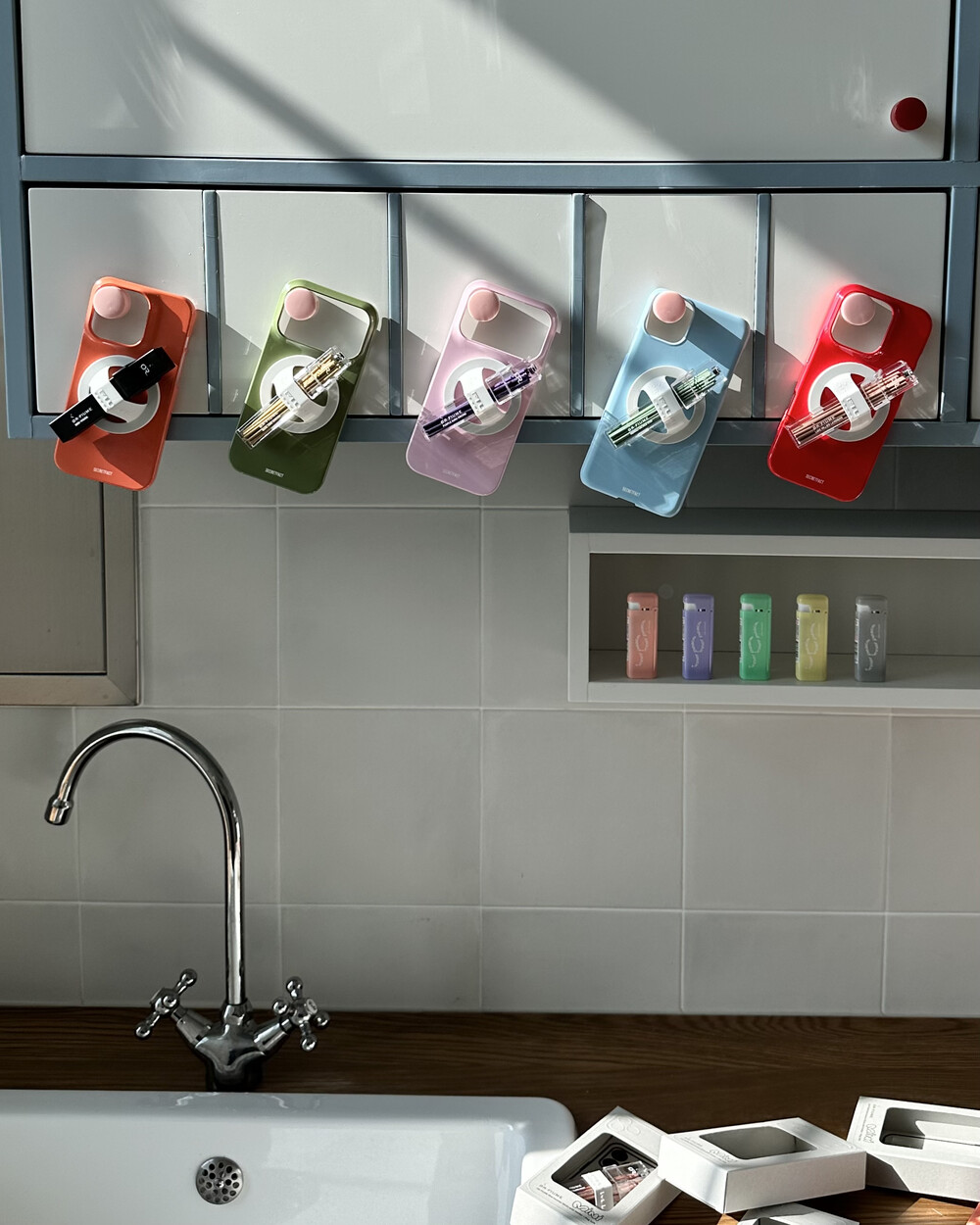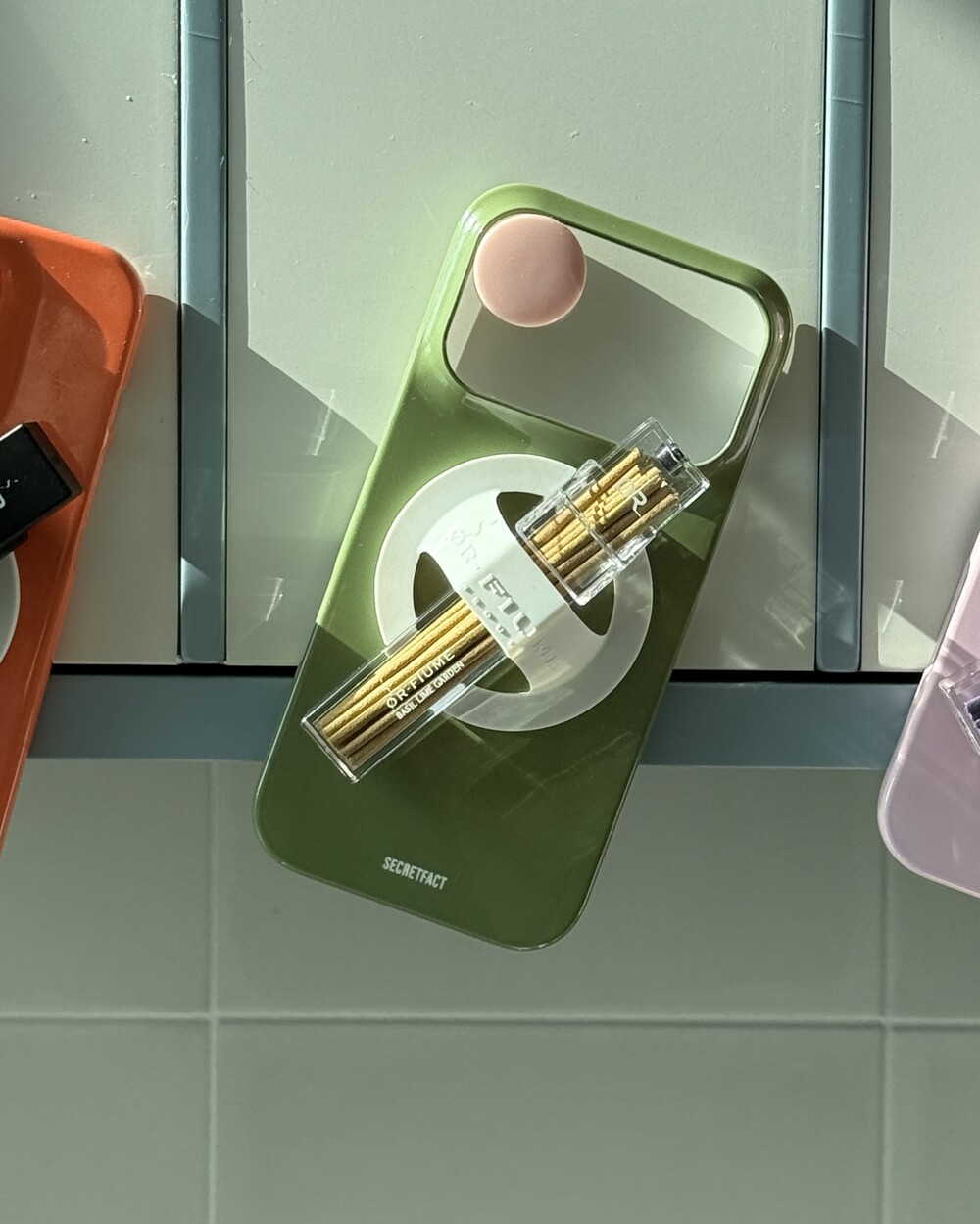 Tip: 갤럭시 등 MagSafe를 지원하지 않는 스마트폰 사용 시에는 동봉된 MagSafe 자석 스티커를 부착한 뒤 실리콘 링을 사용하면 안정적으로 고정됩니다. 인센스스틱 케이스를 제거하면, 실리콘 링을 스마트폰 링 홀더처럼 손가락에 걸어 안정적으로 사용할 수도 있습니다.