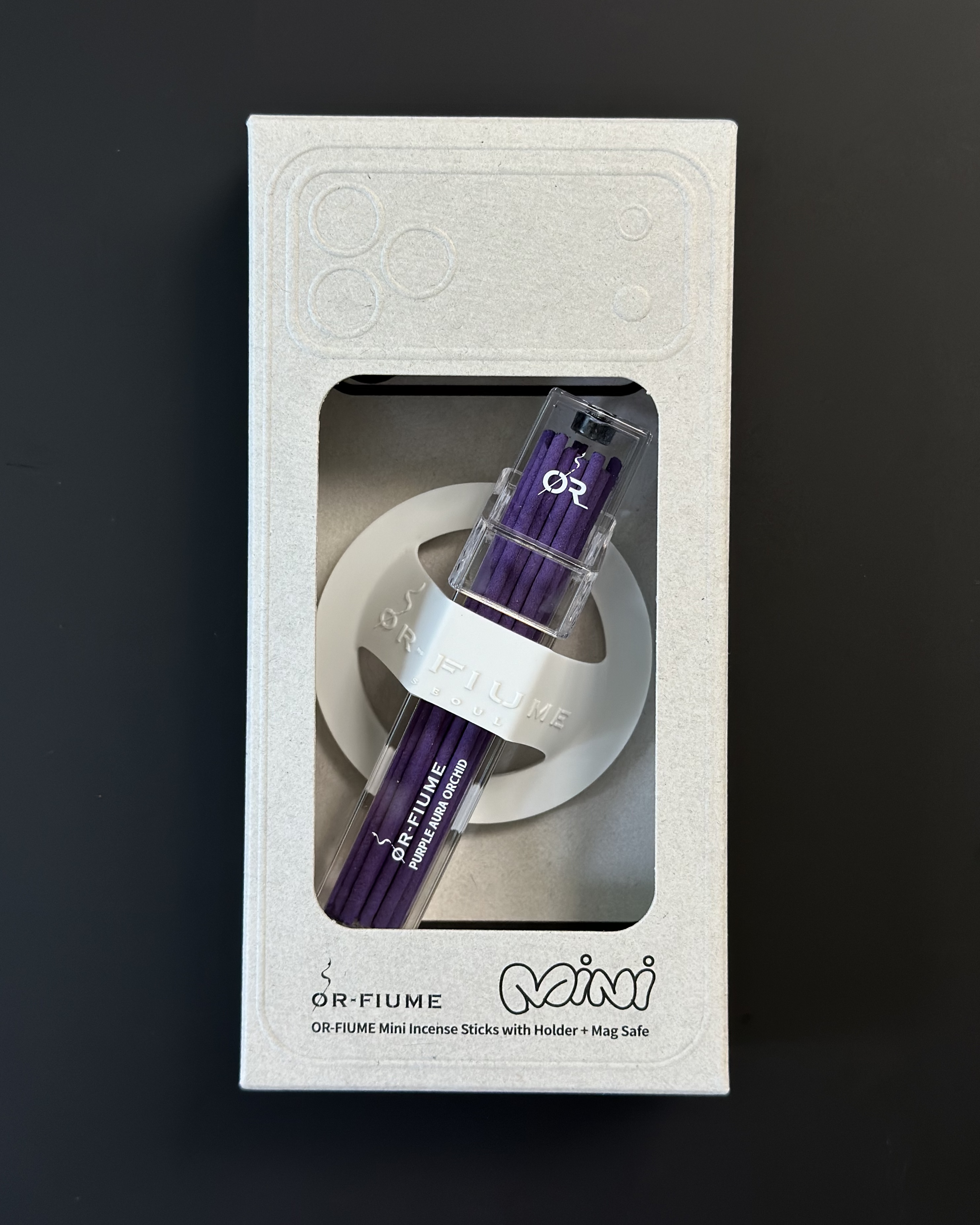 아이폰 뒷면에 MagSafe 방식으로 부착되는 인센스 스틱 '올피움 미니'는 기존 올피움의 하프 사이즈로, 휴대와 보관이 한층 편리합니다.